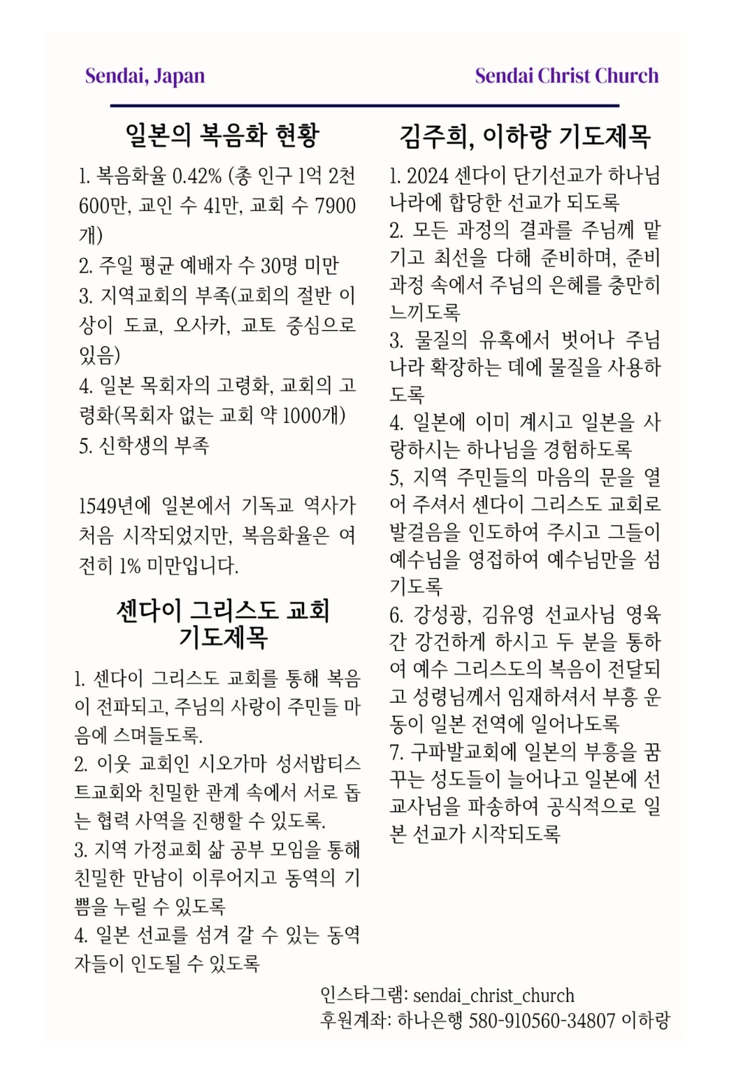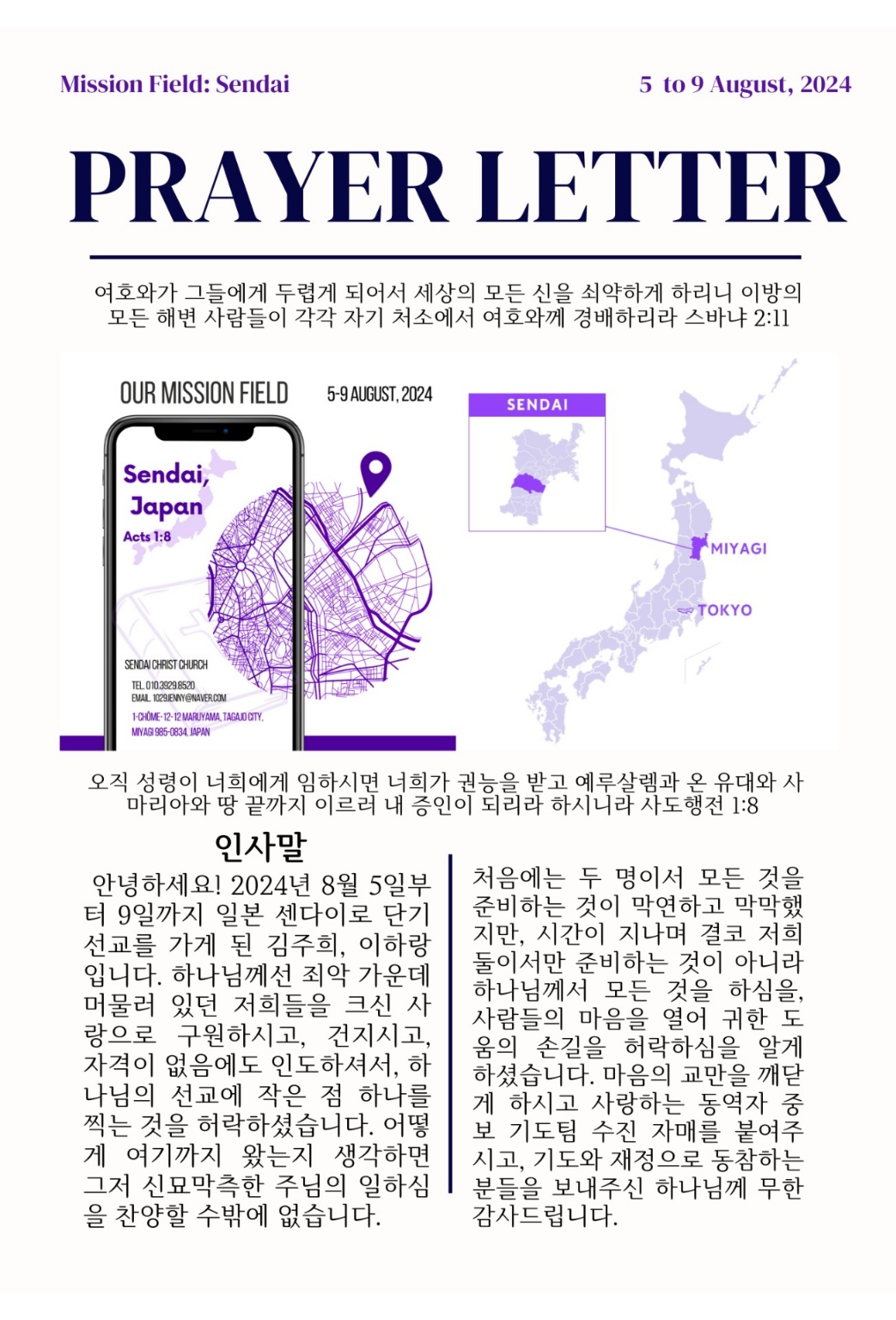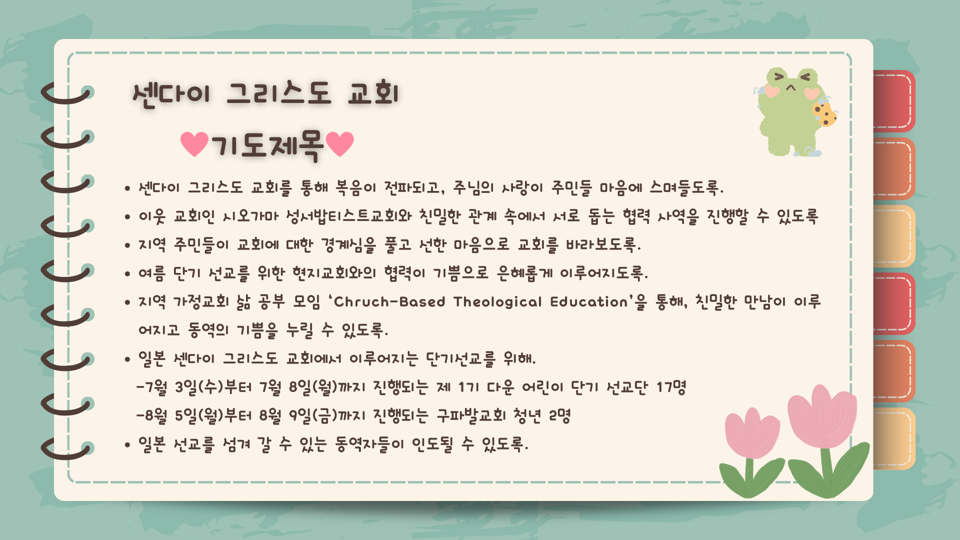 할렐루야! 하나님께선 2024년 8월 5일부터 9일까지 센다이 그리스도교회 단기선교를 통해